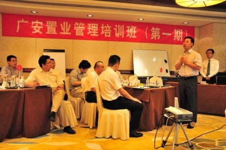 為了進(jìn)一步提升廣安置業(yè)公司管理人員的管理水平,打造一流的管理團(tuán)隊(duì),增強(qiáng)公司核心競(jìng)爭(zhēng)力,實(shí)現(xiàn)公司快速、高效、穩(wěn)定發(fā)展,置業(yè)公司舉辦了以公司中高層管理干部為主的管理技能提升專項(xiàng)培訓(xùn)。此次培訓(xùn)于2013年5月31日在開(kāi)元酒店舉行,培訓(xùn)以“目標(biāo)、溝通、執(zhí)行、激勵(lì)——打造一流的管理團(tuán)隊(duì)”為主題,集團(tuán)董事長(zhǎng)申獻(xiàn)國(guó)及管理層30余人參加了這次培訓(xùn)。