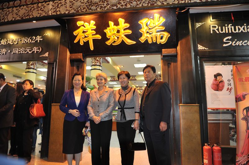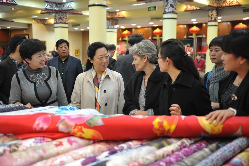 伊琳娜·博科娃參觀了楊梅竹斜街,對大柵欄更新計劃這一模式給予了充分肯定。隨后,伊琳娜·博科娃游覽了大柵欄商業(yè)街,她高度評價了古老而繁華的街區(qū)、老字號的精良工藝,并進(jìn)入內(nèi)聯(lián)升和瑞蚨祥參觀。