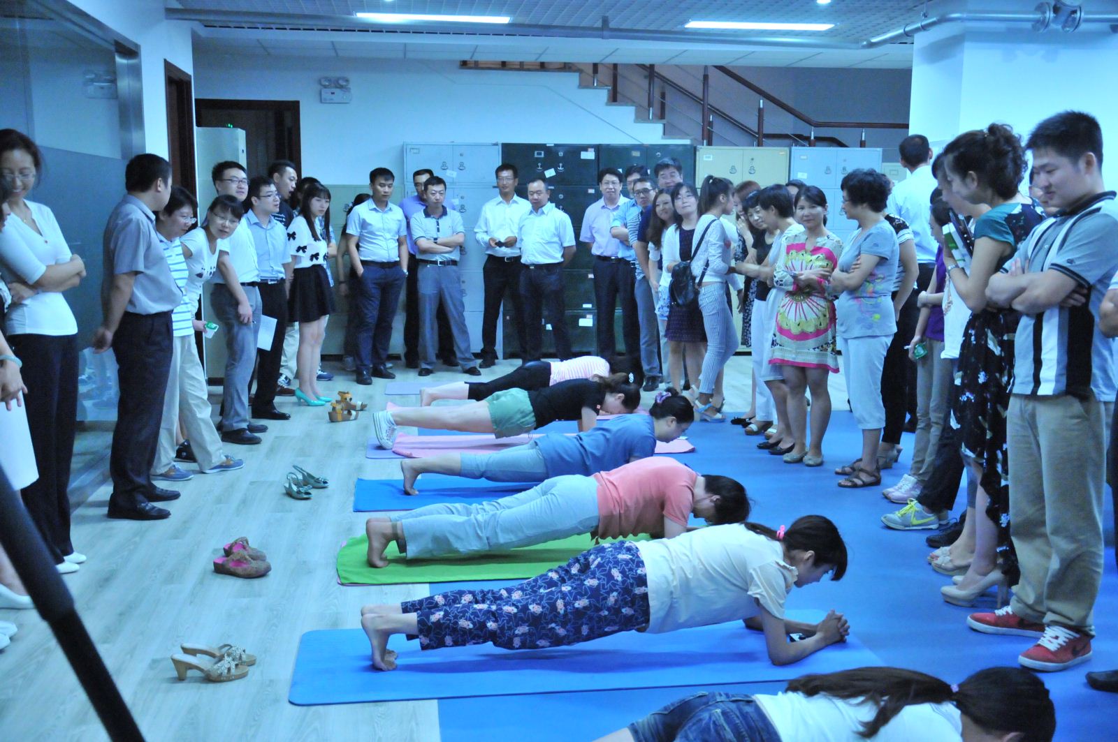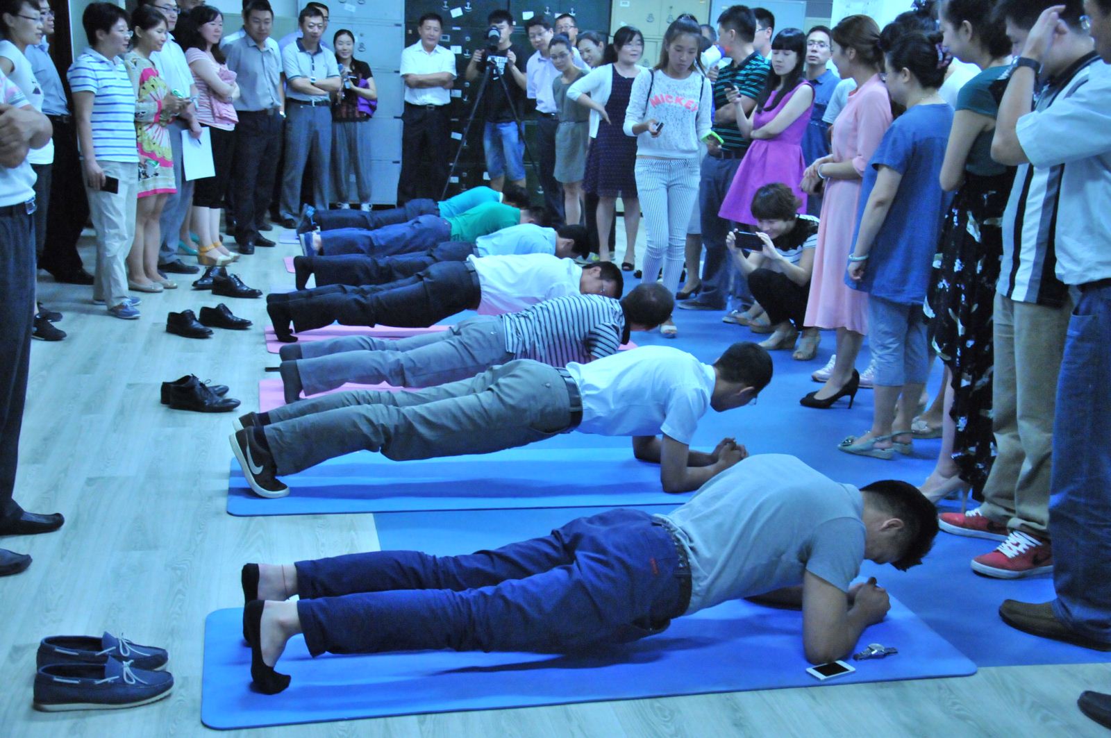 2014年8月廣安置業(yè)利用午休時(shí)間舉行了PLANK平板大賽。經(jīng)過7、8兩日的淘汰賽,堅(jiān)持時(shí)間在2分30秒以上的員工有35人。