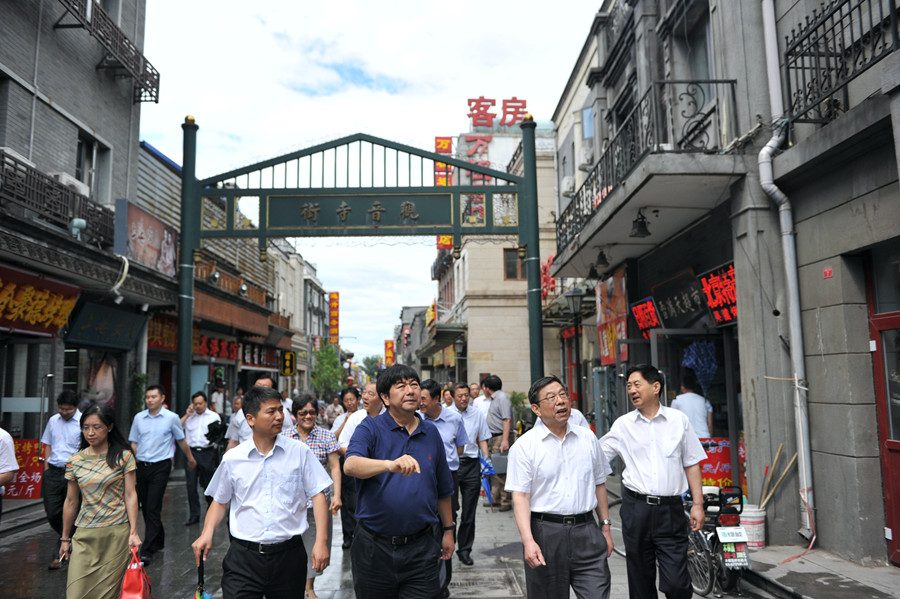 市人大常委會(huì)歷史文化名城保護(hù)條例執(zhí)法檢查組到大柵欄楊梅竹斜街視察