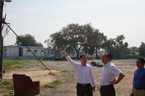 2015年9月14號(hào),北京市國土資源局西城分局局長李偉、副局長黃東華、土地整理儲(chǔ)備中心主任王東等領(lǐng)導(dǎo)到大柵欄C3、H地塊及糧十旅館修繕現(xiàn)場調(diào)研指導(dǎo)工作。